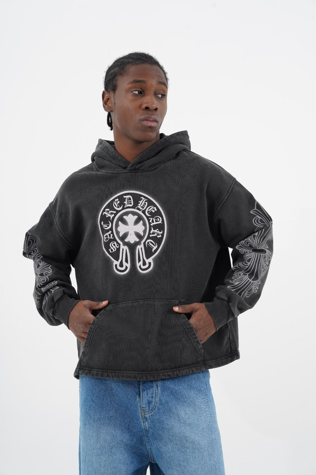 Crafted from high-quality washed cotton, the SACRED hoodie blends urban style with modern trends for a distinctive look. Its premium fabric ensures lasting comfort and durability, while the carefully designed fit complements any streetwear ensemble. Elevate your wardrobe with this expertly crafted piece that balances style and substance effortlessly.